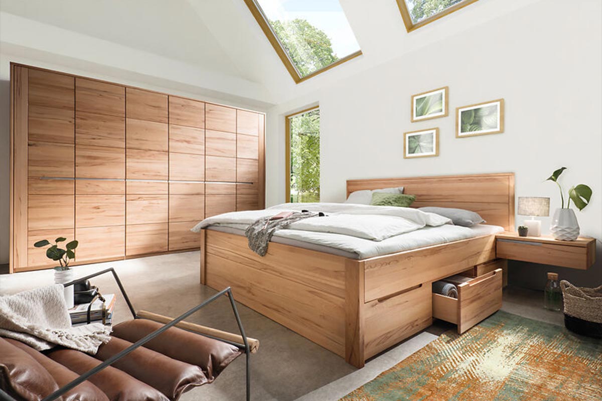 Wenn es um den richtigen Schlaf geht, hatten bereits unsere Großmütter diesen weisen Spruch auf den Lippen: - was zunächst nach einer schlichten Bauernweisheit klingt, hat doch einen wahren Kern. Hochwertige Holzmöbel sorgen für ein verbessertes Raumklima und ein hohes Maß an Bequemlichkeit - ideal für eine erholsame Nachtruhe. In unserem Fachgeschäft in Ingolstadt kannst Du Dich von der Qualität unserer Schlafzimmer aus Massivholz überzeugen. Die Gestelle in allen gängigen Größen können je nach Belieben mit verschiedenartigen Kopf- und Fußteilen ergänzt werden. Auch Möbel in Sondergrößen gehören zu unserem festen Sortiment.